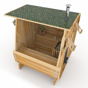 Это квадратное изделие с закругленными углами. За счет такой конструкции во время топки воздух циркулирует по кругу, поэтому баня-бочка нагревается не более 30 минут. Баня имеет одно парильное отделение. Внутри по обе стороны расположены лавочки из кедра, печь установлена между ними у дальней стены. По вашему желанию баню-бочку квадро можно укомплектовать козырьком, верандой и печью с внешней загрузкой, благодаря которой весь мусор после топки остается на улице. Баня-бочка квадро не требует полноценный фундамент, поэтому при необходимости ее можно перенести в другое место.