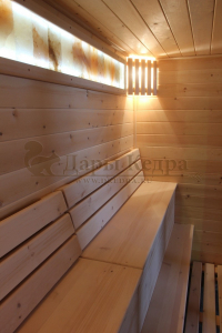 Рекомендуется устанавливать в банях или саунах. Добавив подсветку, полок станет настоящим украшением вашей парной.