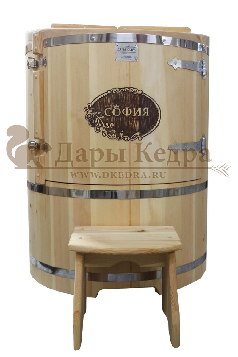 Кедровая бочка (фитобочка) «Фирменная» Это эксклюзивная фитобочка любой модели и комплектации с резьбой вашего логотипа или фирменного знака. Просто приготовьте эскиз рисунка, и наши мастера перенесут его на изделие. Авторский рисунок на фитобочек придаст оригинальность вашему дому или салону красоты, подчеркнёт вашу индивидуальность и непревзойденный вкус. Художественная резьба это ручная работа, выполняется разными мастерами и каждый рисунок неповторим. Вы можете выбрать предложенные варианты резьбы или подобрать изображение и мы предложим вам подходящий эскиз. На сайте представлены наши работы в качестве примера. Каждая резьба рассчитывается индивидуально и может быть нанесена на любую модель фитобочки. Парение в фитобочке благотворно влияет на организм в целом: повышается иммунитет, выводятся шлаки и токсины, улучшается работа органов тела и состояние кожи. Обязательно обращайте внимание на размер дверных проемов вашего помещения. Если они меньше 78 см, то закажите разборную модель!