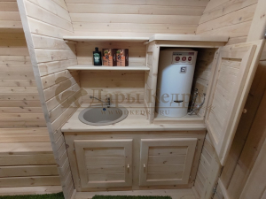 Для удобства размещения бытовых мелочей обязательно добавьте небольшие шкафчики с дверцами (2 шт) - 15 000 руб и верхние открытые полки (2 шт) - 5 000 руб. Всё необходимое в бане или доме должно быть всегда под рукой!