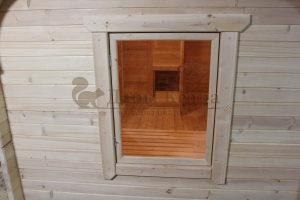 Размер окна варьируется от 120 см до 180 см в длину, ширина согласовывается индивидуально. Добавит света парному отделению, а также визуально расширит пространство.