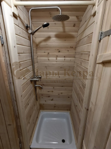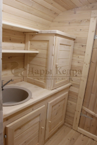 При обустройстве кемпинг-домов и габаритных бань (эксплуатация в качестве летнего домика) обратите внимание на шкаф, он точно вам пригодится для размещения вещей. Внутри - полки и штанга для аккуратного размещения одежды. Высота - 1,8 м, ширина - 0,9 м, глубина - 0,45 м.