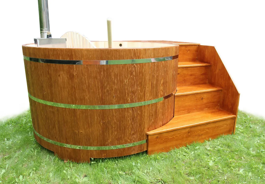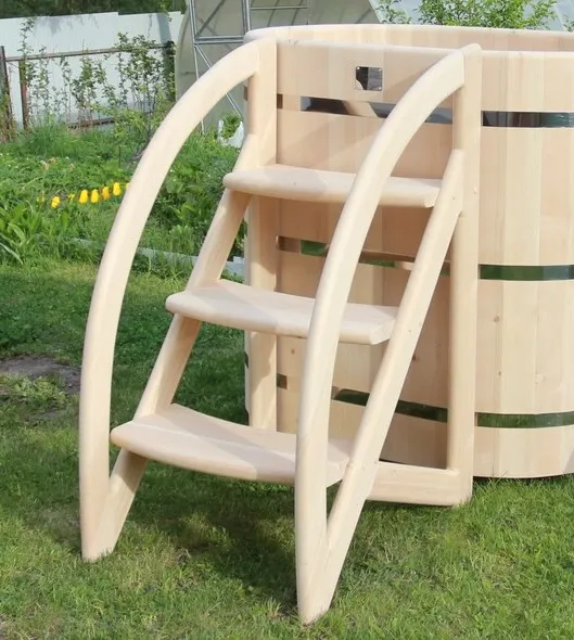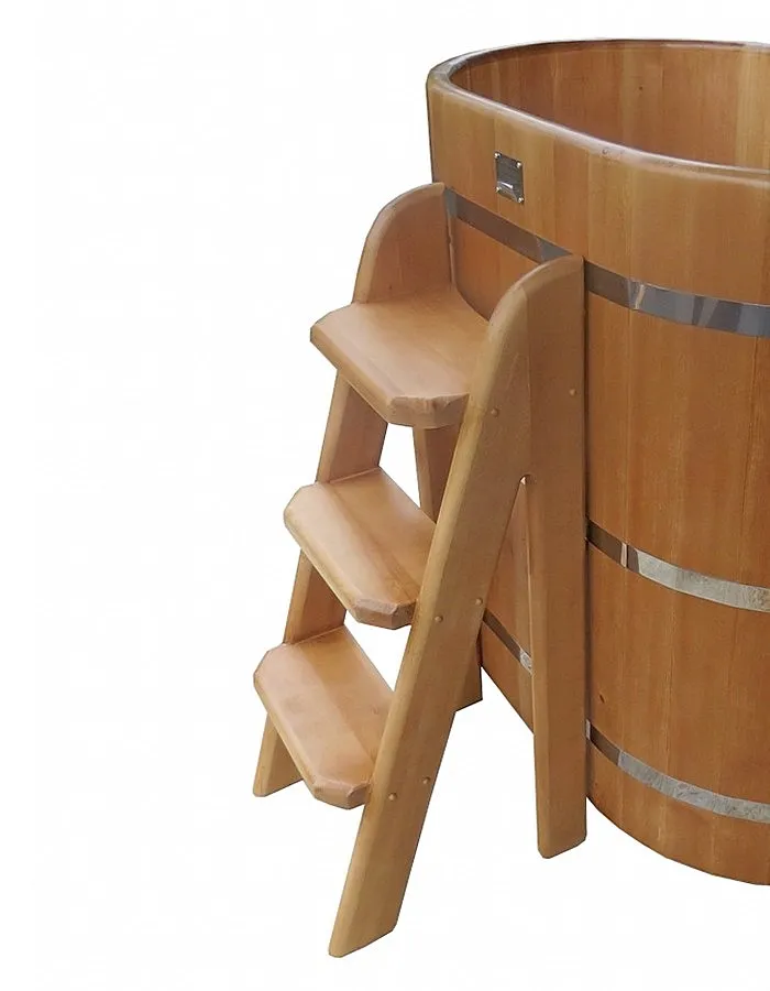Это герметичная емкость для воды из кедра, которая используется для отдыха и охлаждения тела после процедур парения. Купель оснащена лавочками, приставной и внутренней лестницей из кедра. За счет стяжных болтов обручи из нержавеющей стали плотно прилегают к кедровой купели. Это позволяет равномерно распределять нагрузку воды и сохранить форму изделия в период эксплуатации. При правильном уходе купель для бани не рассыхается и не подвергается гниению. Овальная купель подходит для уличного и комнатного использования.