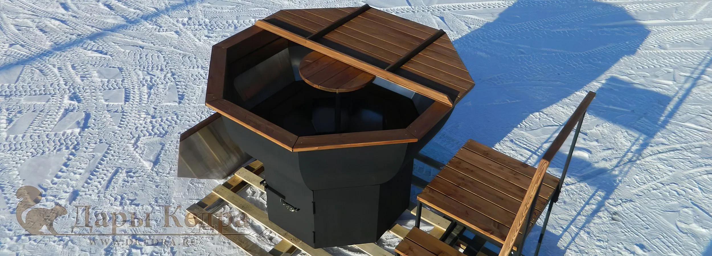 Эксплуатация зимой примерно такая же, как и летом. Отличие заключается в затраченном времени на растопку из-за отрицательной температуры окружающей среды. Главное - это во время растопки поддерживать горение в печи, потребуется несколько закладок дров, чтобы стальная чаша согрелась до комфортного уровня. В среднем, уйдет порядка 1,5-2 часов до начала банных процедур. После того, как банные процедуры окончены, воду необходимо слить во избежание промерзания емкости, ее деформации. Хранить стальную емкость зимой без эксплуатации нужно только пусой, желательно сверху накрыть крышкой. Деревянную обшивку рекомендуется ежегодно пропитывать защитными средствами (воски, масла для бани).