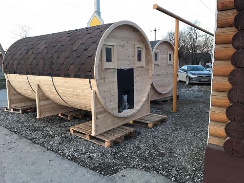 Круглая баня-бочка отличный вариант для тех кто ценит свое время и любит не стандартные решения. Топится она быстро, выглядит стильно и красиво. Заказали мы такую в небольшой семейный отель. Баней довольны и мы и клиенты. Спасибо работникам компании за качественный сервис.
